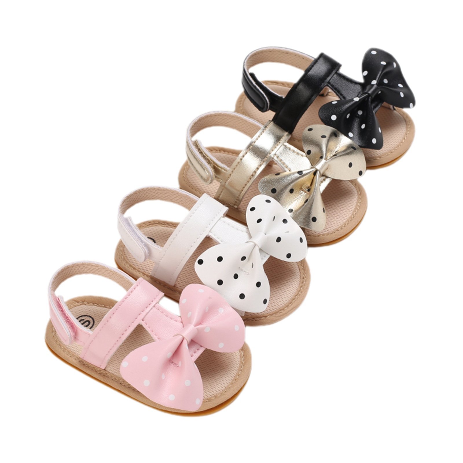 Baby Girls PU Leather Sandals, Dots Bowknot Princess Dress Shoes Non-Slip Infant First Walkers